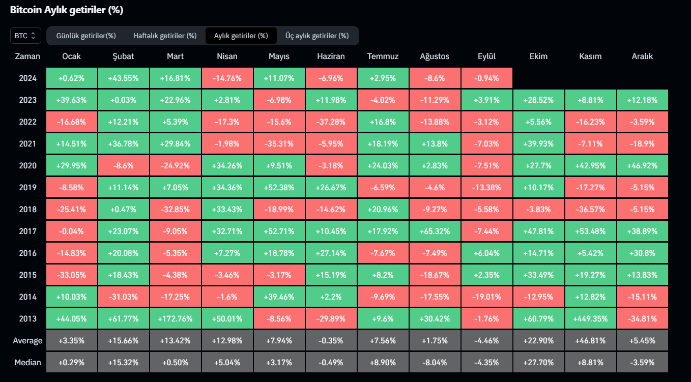 Her ne kadar lider kripto para birimi Bitcoin (BTC) ekim ve kasım ayları özelinde genellikle sert yükselişler yaşıyor olsa da, eylül aylarında değer kaybediyor.