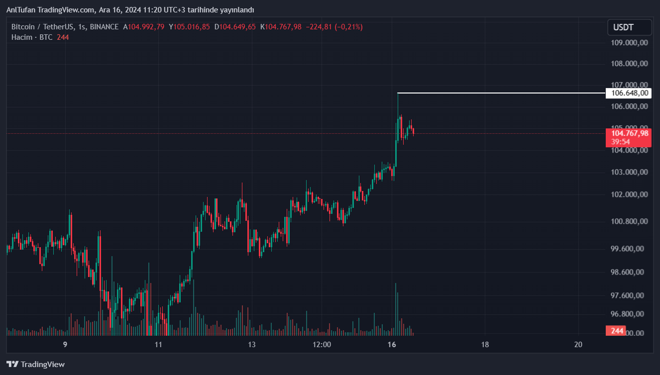 Bitcoin yeni haftaya iyi başladı. Tarihin en yüksek aşmayı başaran BTC, ATH tazeleyerek 106.648 doları gördü. BTC’nin ATH tazelemesi kripto piyasasında yankı uyandırdı.