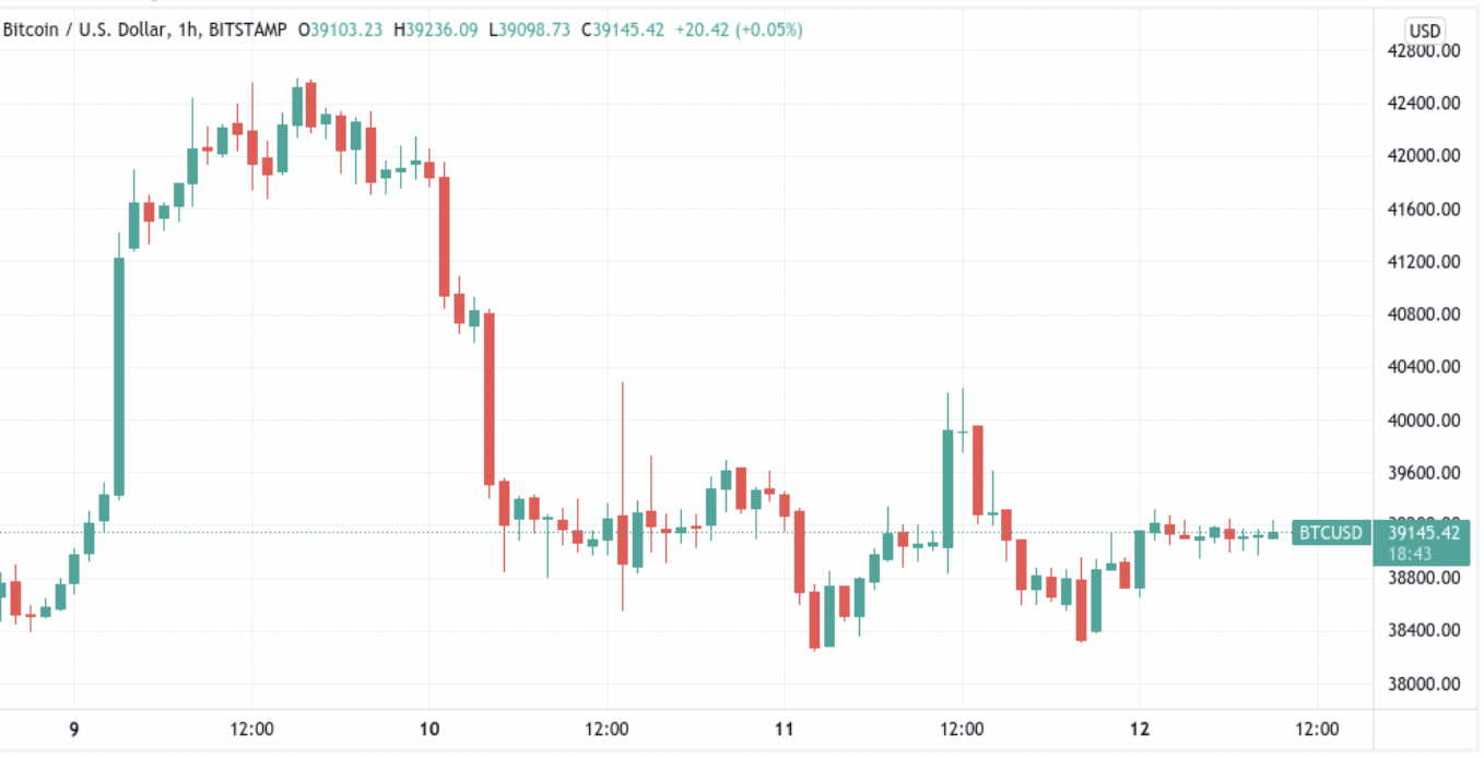 BTC/USD grafiğine bakıldığında 39.000 dolara birkaç kere düşüş yaşandığını ancak bunların başarı ile püskürtüldüğü görülüyor.