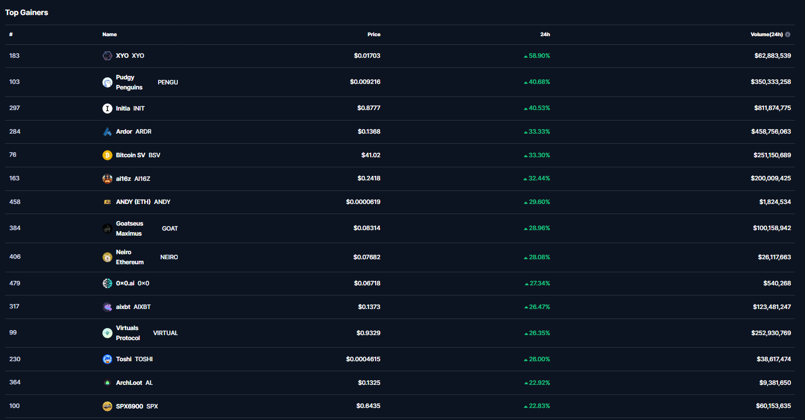 Bugün özelinde Bitcoin’in yükselişi sırasında BTC hakimiyetinin sabit kalması, altcoin’lerin değer kazanmasını sağladı. CoinMarketCap verilerine göre ilk 500 kripto para birimi özelinde bugün içerisinde en büyük yükselişi %58 ile birlikte XYO gerçekleştirdi.