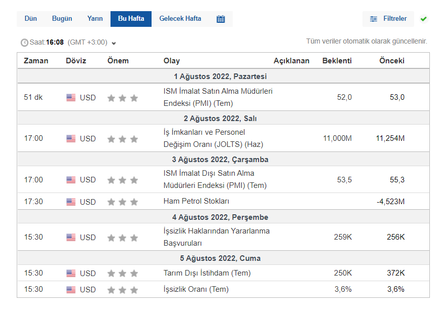 10.08.2022 tarihinde ise ABD’de enflasyon verisi açıklanacak. Enflasyon artışlarının sona ermesi ise Amerikan Merkez Bankasının (FED) faiz artışlarında yumuşamaya gitmesini sağlayabilir.