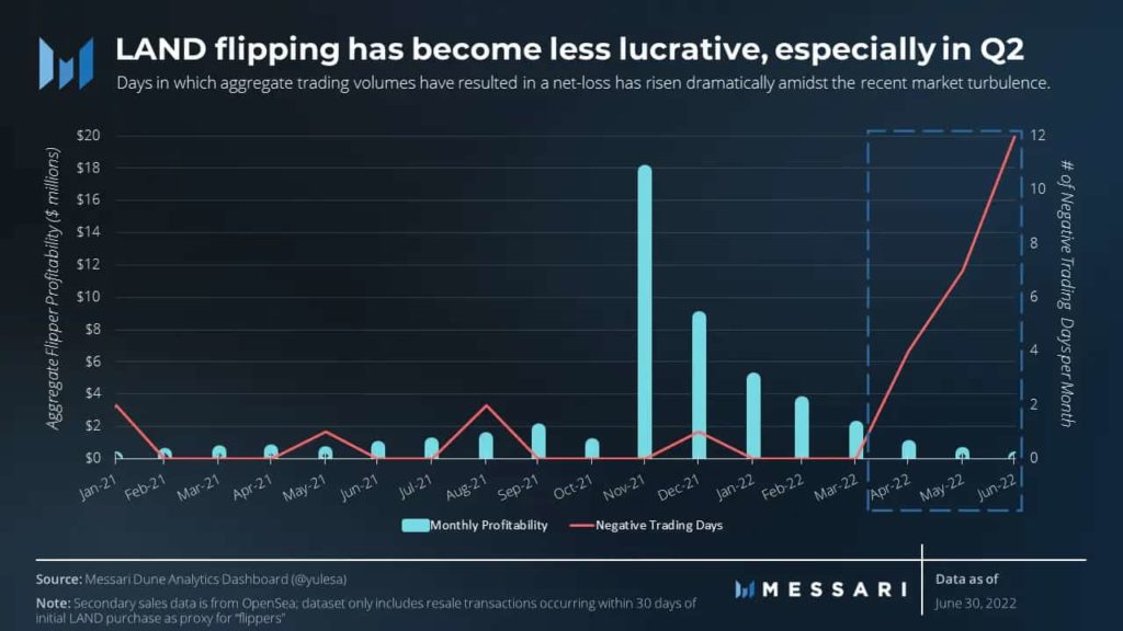 Başarılı bir veri sağlayıcısı olan Messari’nin aktardıklarına göre, Metaverse arazilerindeki işlem hacmi resmen dip seviyelere ulaştı.
