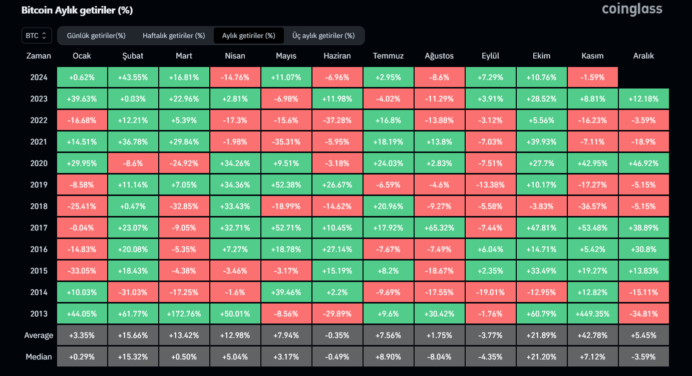 Başarılı bir veri sağlayıcısı olan CoinGlass‘ın aktardığı bilgilere göre Bitcoin (BTC) kasım ayları özelinde genellikle savruk hareketler sergiliyor.