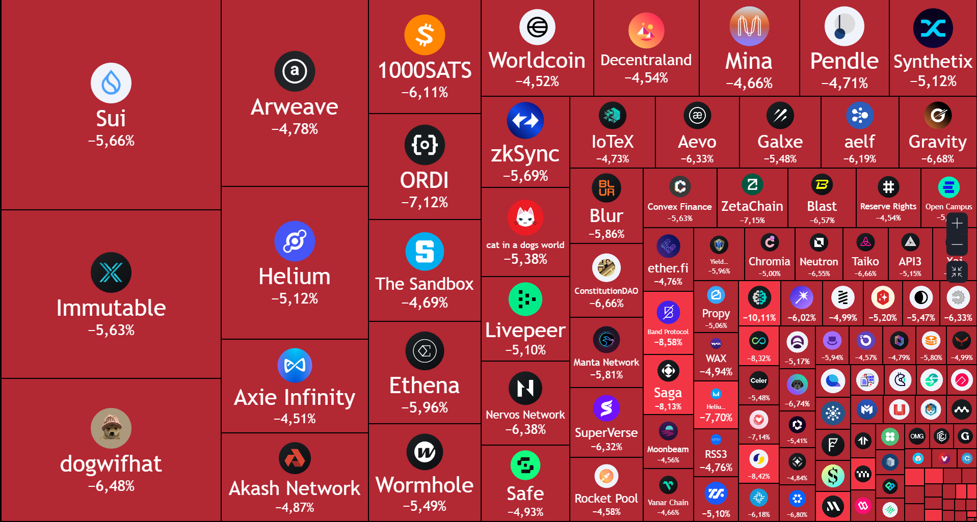 Son yaşanan düşüşler ile birlikte %5’e yakın değer kaybeden BTC, 59 bin dolar seviyelerinin altına sarktı. BTC’deki bu geri çekilmeler haliyle altcoin’leri de fazlasıyla kötü etkiledi.