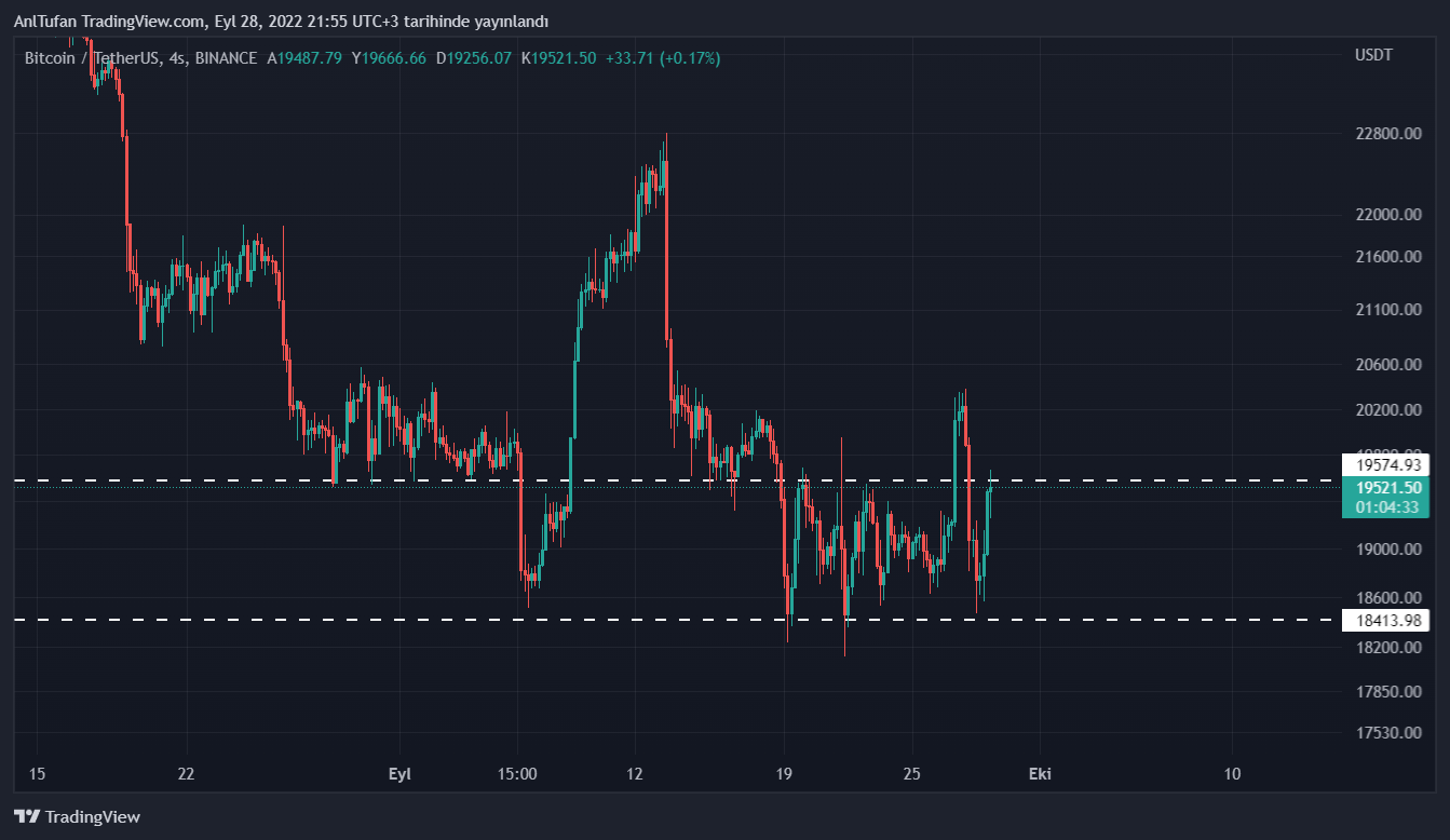 27 Eylül tarihinde gerçekleşen ve kırılım gibi gözüken likidasyon operasyonunu göz ardı edersek, Bitcoin’in tam 10 gündür 18.400 – 19.500 dolar aralığında akümüle olmaya devam ettiği görülüyor.