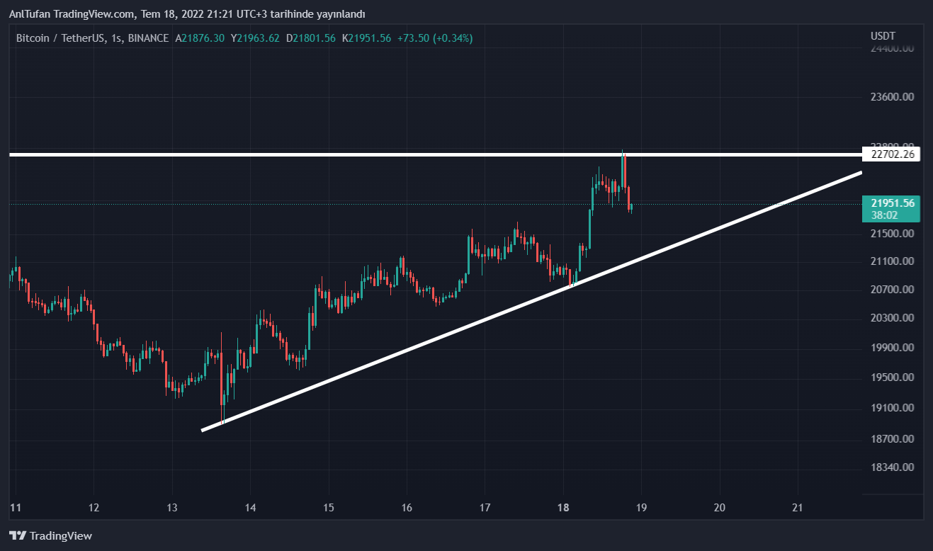 200 haftalık ortalama olan 22.700 doların üzerinde günlük ve haftalık kapanışlar yapması gereken Bitcoin, bu direnci her denediğinde satıcı baskısı ile karşı karşıya kalıyor.