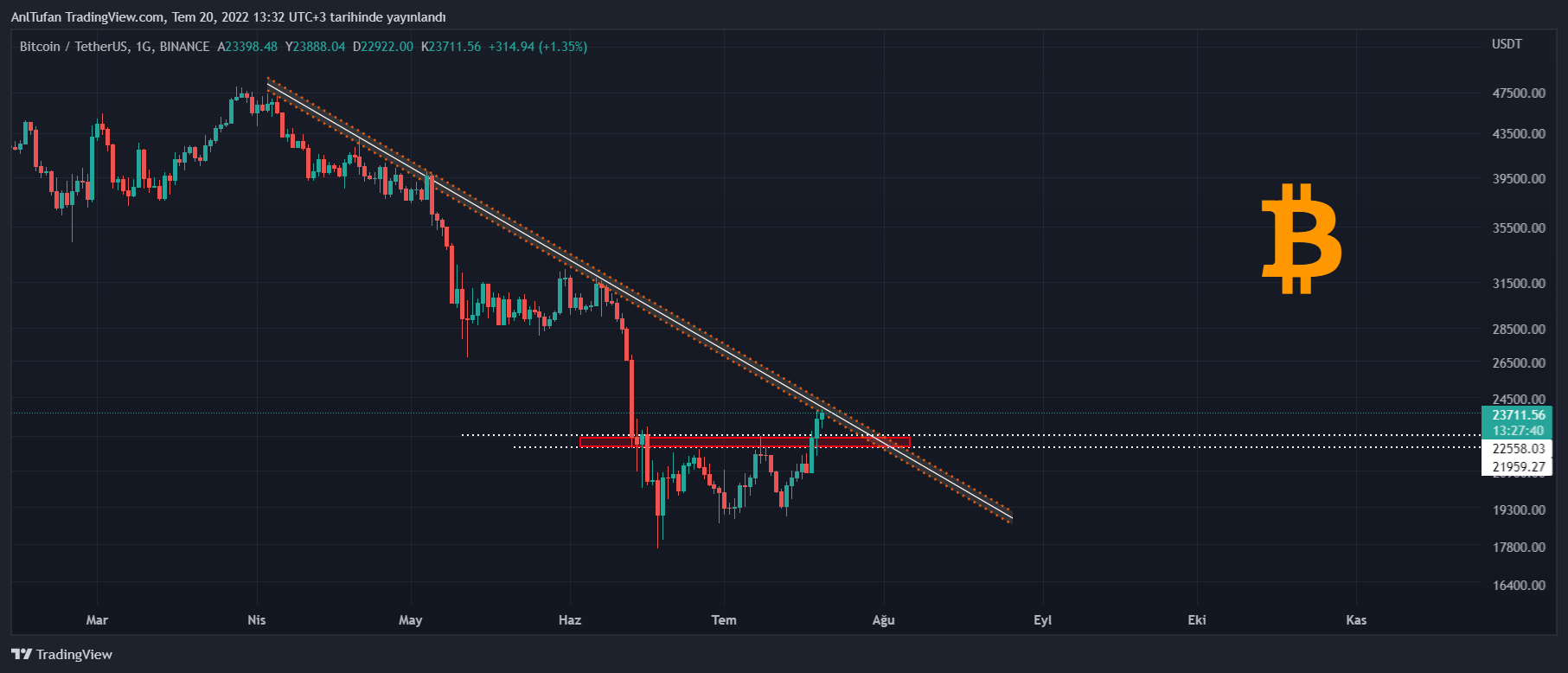 Bugün itibariyle de düşen trend seviyesini birçok kez deneyeceği tahmin edilen lider kripto para birimi Bitcoin, 24.200 dolar direncini aşması halinde ise kripto para sektöründe yeni bir ralli başlatabilir.