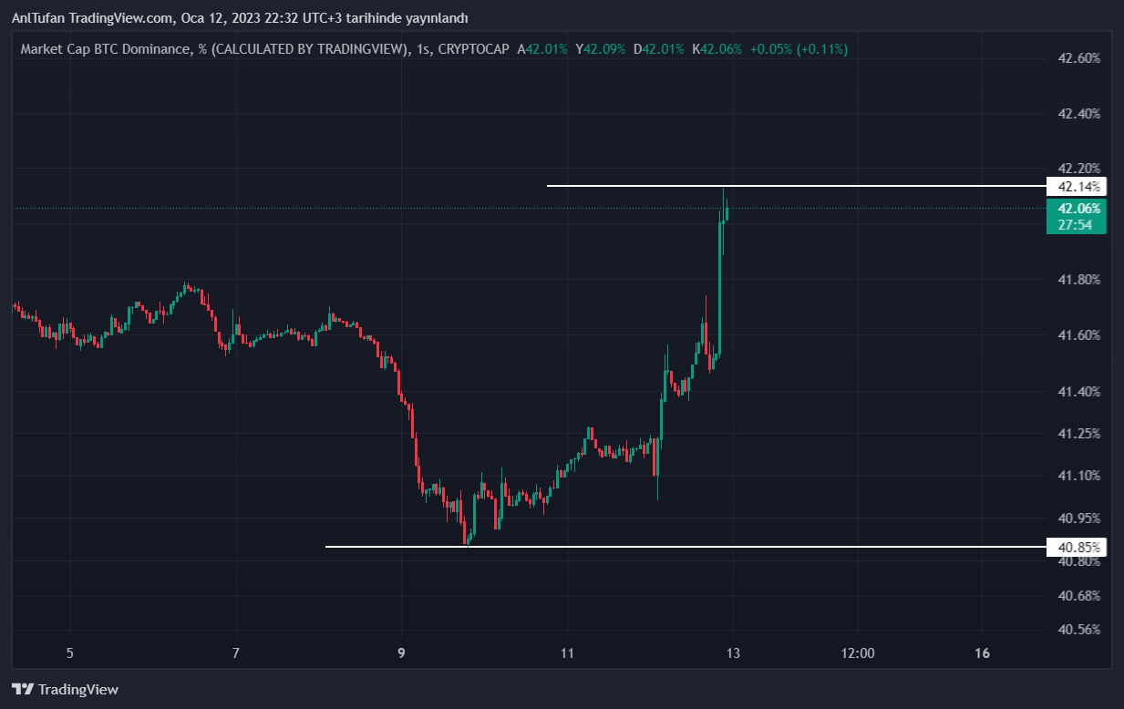 Bitcoin dominans tablosunun ani bir şekilde yüzde 42’li seviyelere sıçraması, altcoin’lerdeki likiditenin BTC’ye geçmesine neden olmuş gibi gözükmekte.