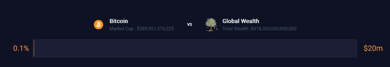 Başarılı bir analiz platformu olan PricedInBitcoin21’in bugün aktardığı verilere göre, Bitcoin’in piyasa değeri şu anda toplam küresel servetin yalnızca yüzde 0,1’ine eşit.