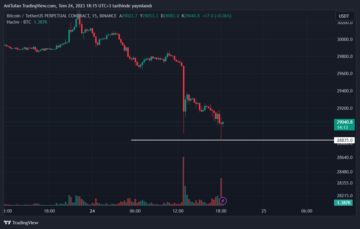 28.835 dolar seviyelerine kadar gerileyen Bitcoin, son düşüşün ardından tepki almayı başardı. An itibariyle BTC 29 bin dolar seviyesinde işlem görüyor.