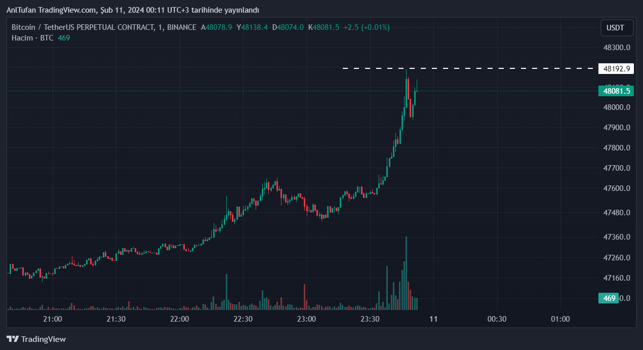 Her ne kadar hafta sonları kripto piyasasında kayda değer bir hareketlilik olmasa da, Bitcoin son dakikalarda 48 bin dolara ulaşmayı başardı.