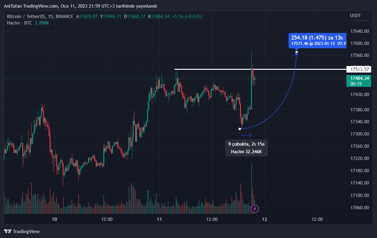 Son 2 saat içerisinde yüzde 1.5 oranında yükseliş yaşayan Bitcoin, halen 17.500 dolar direnci üzerinde kalmayı başaramasa da, bu direnç noktasını zorlamaya devam etmekte.