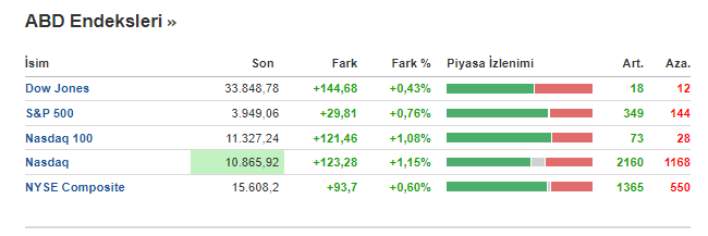 Bitcoin’in yükselişlerindeki ana nedenin ise ABD borsaları olduğu görülüyor. Nasdaq‘ın günlük kazancının yüzde 1’i aşması, BTC’nin hareketlenmesini sağladı.