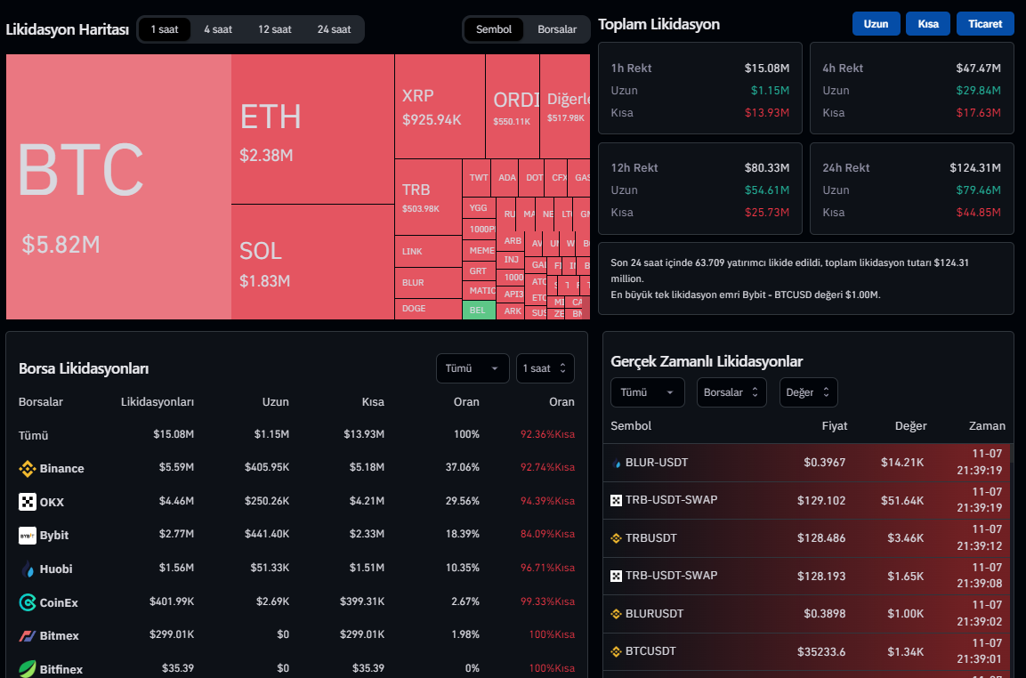 Bitcoin son 1 saat içerisinde 6 milyon dolarlık short pozisyonu tasfiye etti. Son 24 saat içerisinde ise toplamda 45 milyon dolarlık short likit edildi.