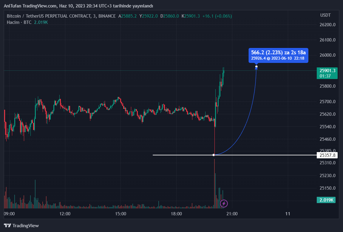 Bitcoin 25.350 dolar seviyesine dip yaparak 26 bin dolara ulaştı. BTC’nin 26.500 dolara ulaşması ise kripto piyasasında tekrardan boğa havasının oluşmasını sağlayacak.