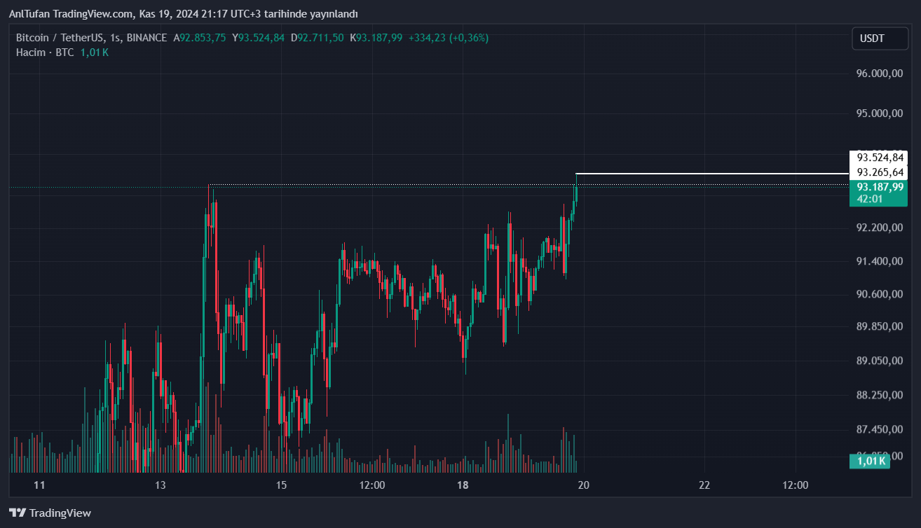 Kısa bir süre önce tarihin en yüksek seviyesi olan 93.265 doları aşmayı başaran BTC (93.524 dolar), kripto para yatırımcılarının dikkatini çekti. BTC’deki bu artışlar ise altcoin‘lere sirayet etmiyor.