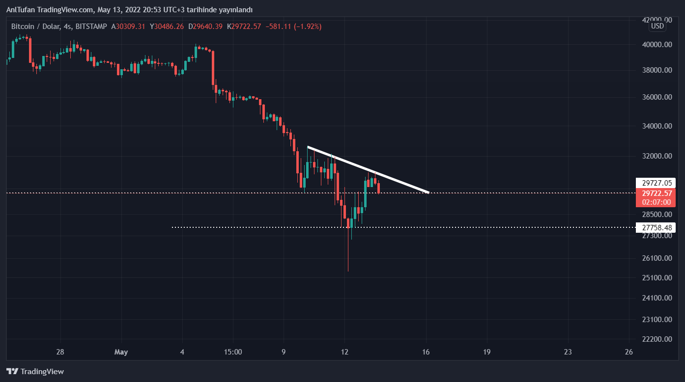 Lider kripto para 29.700 dolar desteğini kaybetmesi halinde ise, 27.700 dolar dibine kadar bir düşüş yaşayabilir.