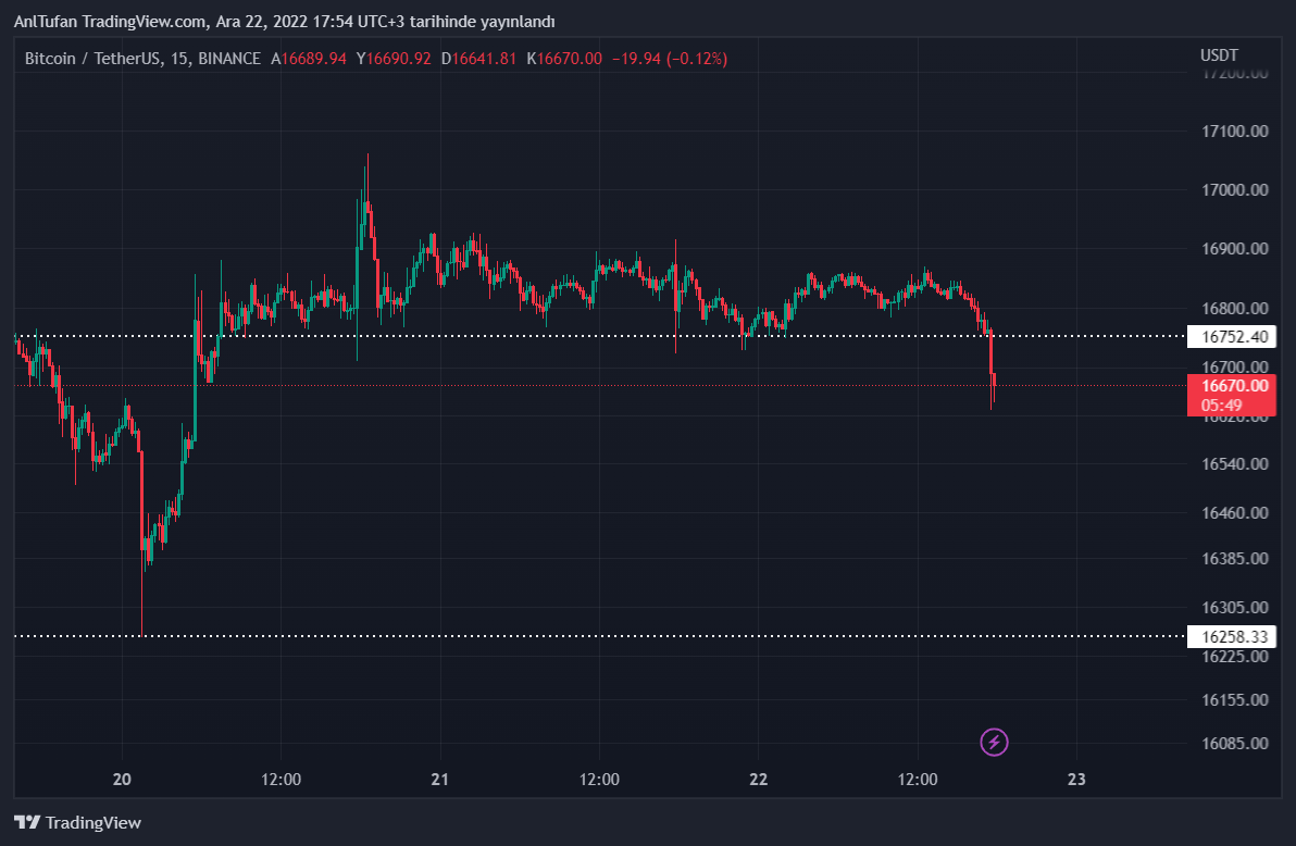 Bitcoin bir süredir 16.750 dolar seviyesinin hemen üzerinde yer alıyordu. Her ne kadar bu seviyenin altına iğneler gelse de, BTC destek seviyesi altında 15 dakikalık kapanış dahi yapmamıştı.