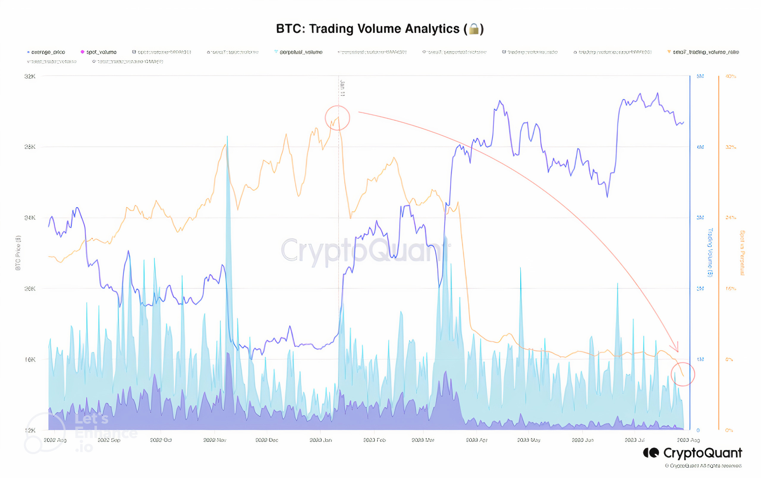 “Ayrıca, tüm borsalardaki haftalık ortalama SMA7D BTC işlem hacmi Mart ayında 2.5 milyon BTC iken, Temmuz ayında 600 bin BTC’ye düşmüştür. Bu, belirtilen dönemde %75’ten fazla bir azalma olduğunu temsil eder.”