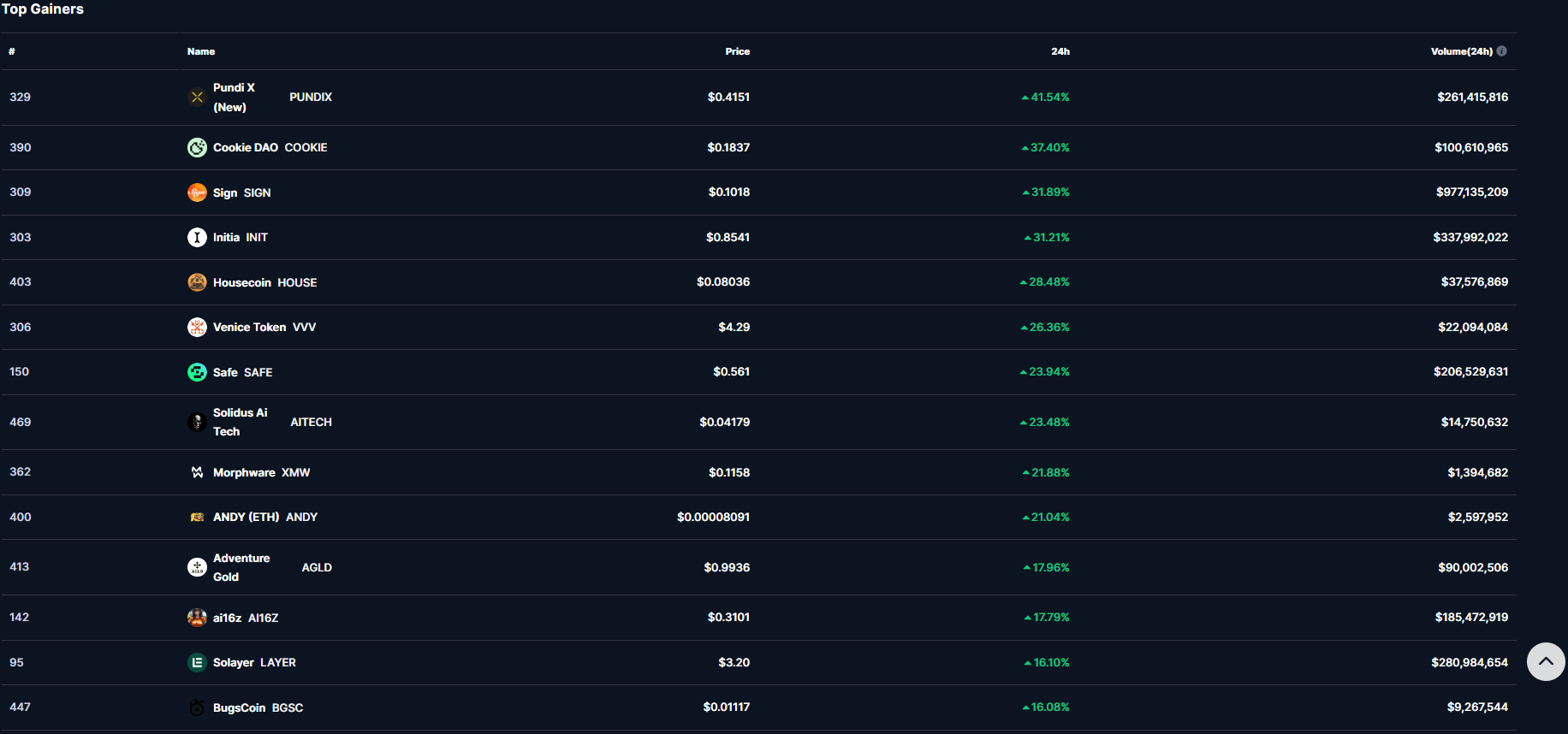PUNDIX’in bugün NVIDIA işbirliği sonucunda bu yükselişi gerçekleştirdiği görüldü. PUNDIX’in yanı sıra COOKIE, SIGN, INIT, HOUSE ve VVV‘de kayda değer artışlar yaşadı.