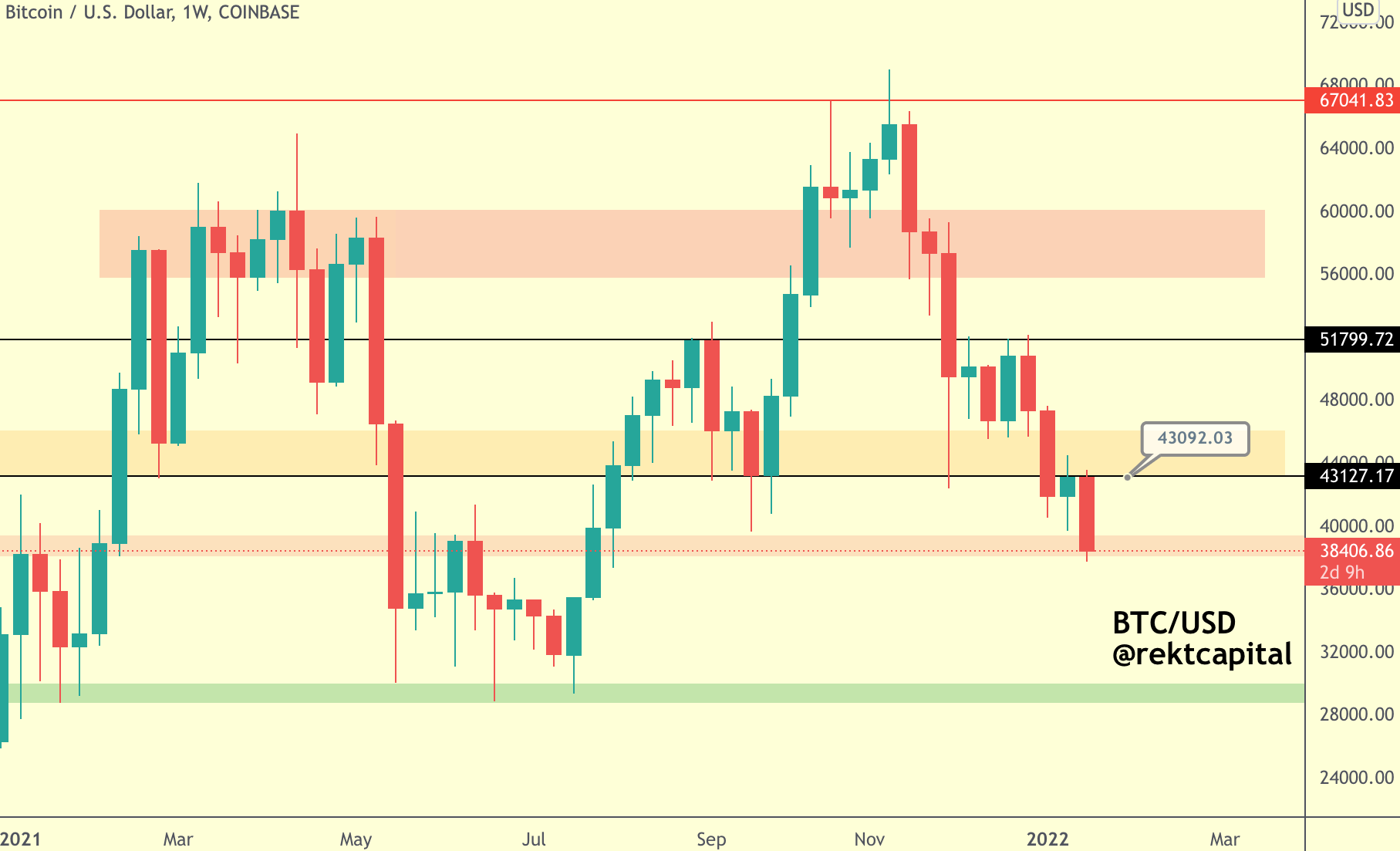 Rekt Capital’e göre BTC, 38.000 dolar ile 43.1000 dolar aralığında konsolide olması gerekiyor. 38.000 doların altında net bir kırılma daha derin düşüşleri tetikleyebilir.