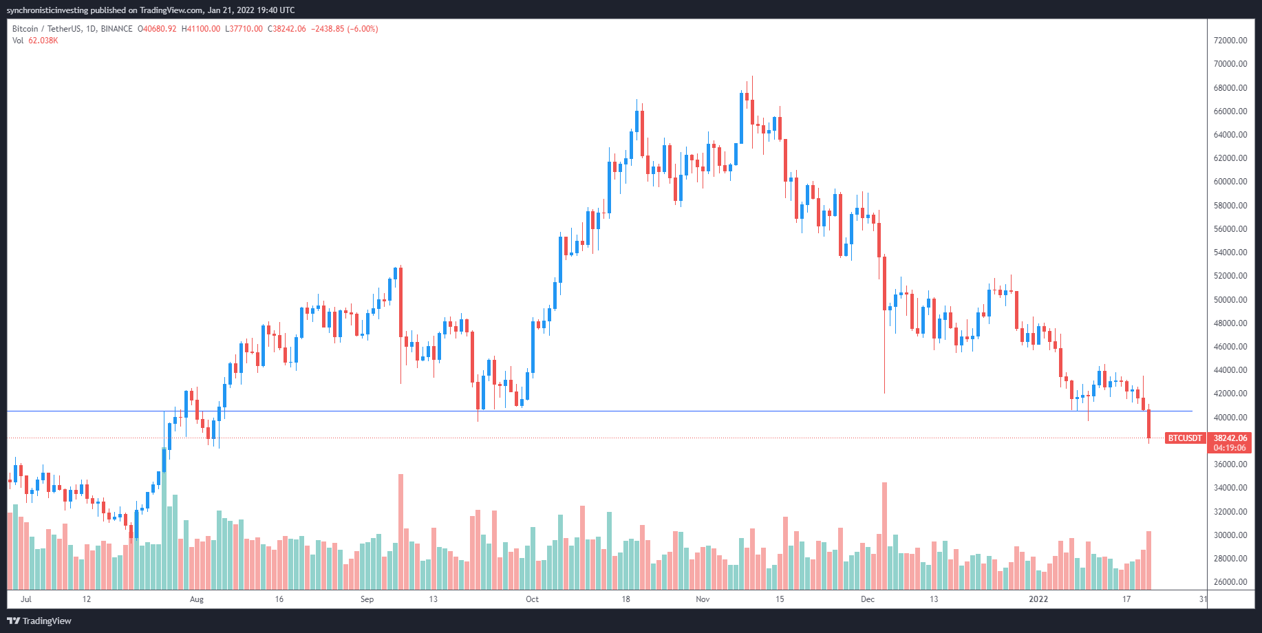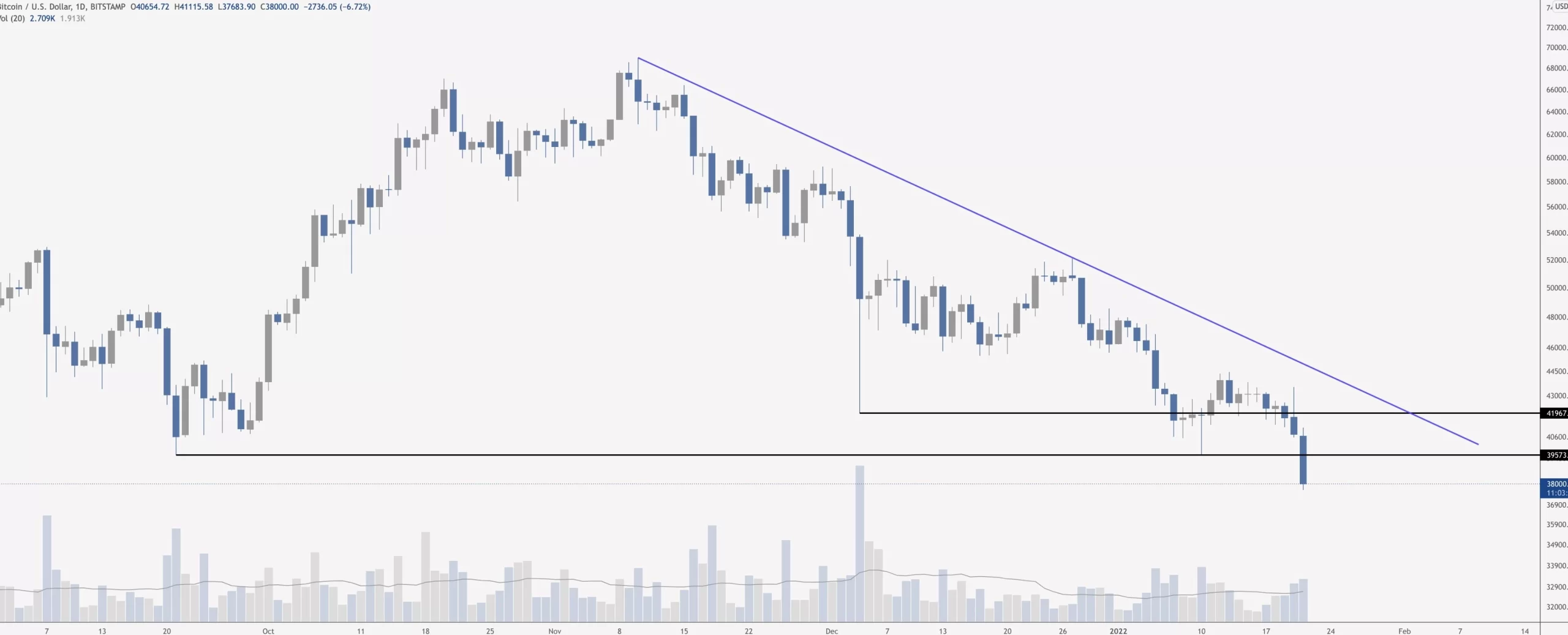 ”Bitcoin’de son bir yükseliş bekleyen boğalar günlük 39.600 doların üzerinde bir kapanışı şart olarak bekliyor.”