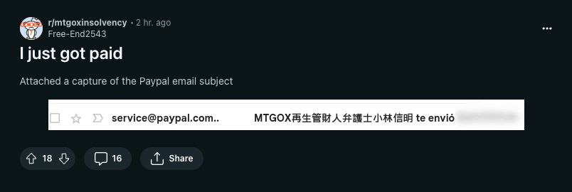 Bu varlıkların Mt.Gox mağdurlarına dağıtılmaya başlanmış olma ihtimali dahi kripto piyasasında satış baskısı oluşturdu. Mt.Gox yetkilileri ise konu ile ilgili herhangi bir açıklama yapmadı.