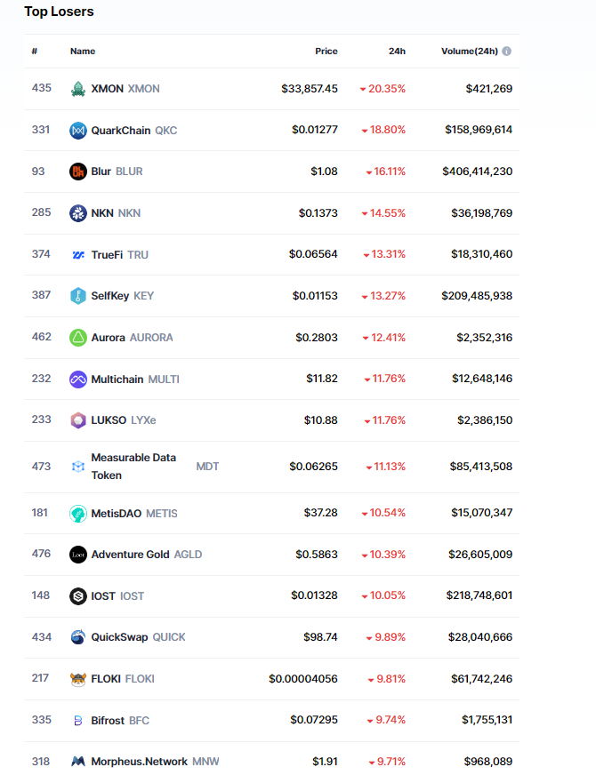 Başarılı bir veri sağlayıcısı olan CoinMarketCap’in aktardıklarına göre, bugün itibariyle en büyük düşüşü XMON (XMON) isimli altcoin yaşadı. Son 24 saat içerisinde yüzde 20’den fazla düşüş yaşayan XMON, yatırımcılarını üzdü.