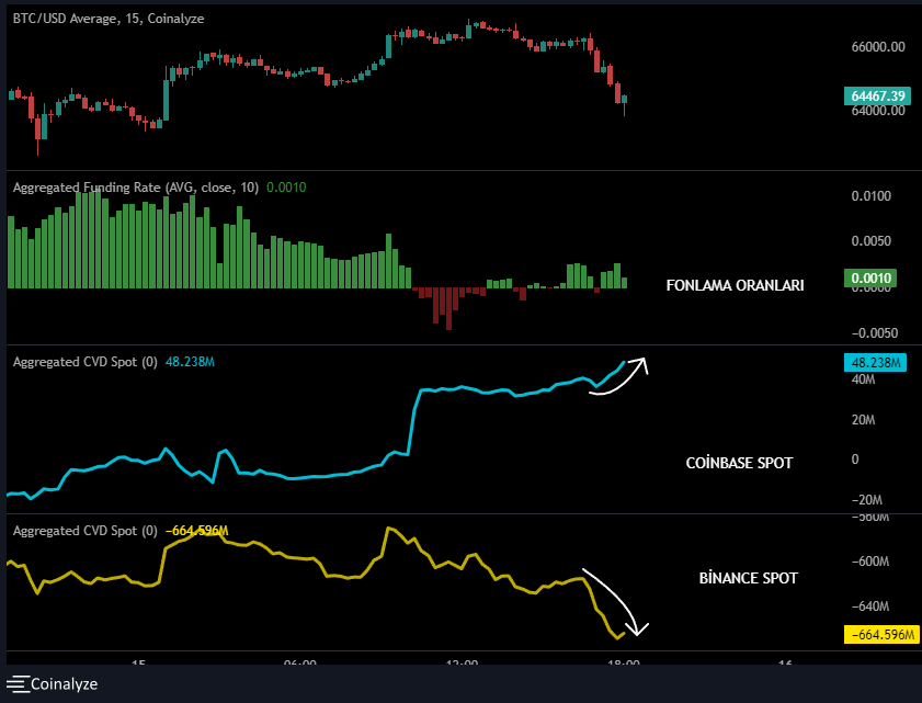 Son gelen bilgilere göre Coinbase spot üzerinden Bitcoin alımı yaparken Binance ise BTC satışı yapıyor. Binance’in satışları Bitcoin ve altcoin’lerdeki son düşüşleri tetiklemiş olabilir: