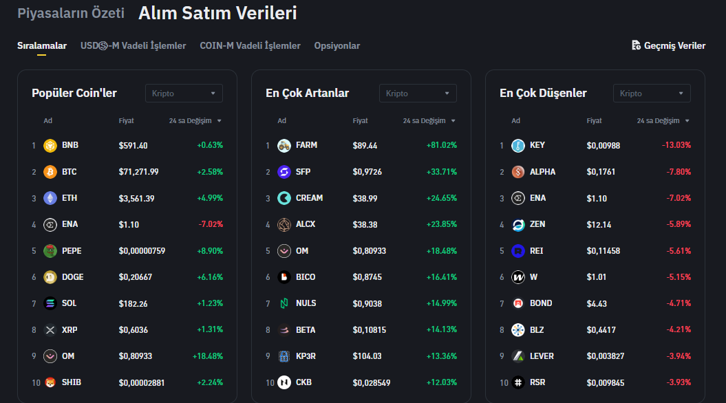 Lider altcoin Ethereum (ETH) bugün Bitcoin’den bir miktar fazla değer kazanmayı başardı. ETH’nin haricinde Binance’de listeli FARM, SFP, CREAM ve ALCX gibi altcoin’lerde ciddi yükselişler yaşadı.