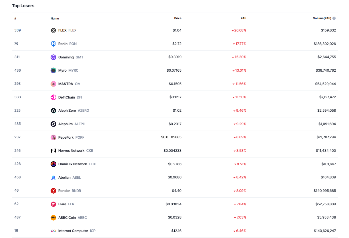 Başarılı bir veri sağlayıcısı olan CoinMarketCap’in aktardığı bilgilere göre ilk 300 kripto para birimi içerisinde bugün itibariyle en büyük düşüşü FLEX isimli altcoin gerçekleştirdi.