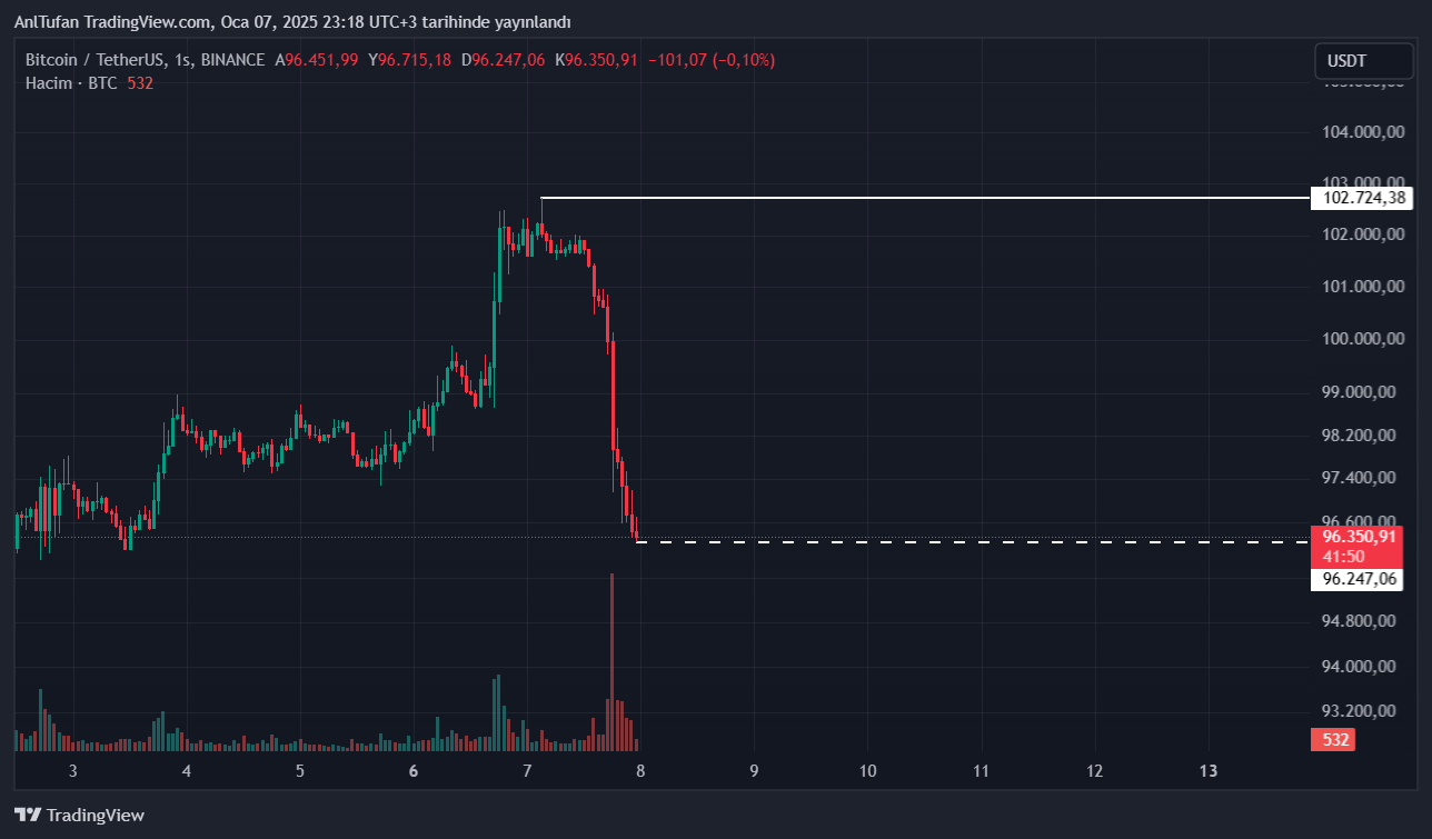 Kripto para sektöründe son saatlerde ciddi geri çekilmelerin yaşandığı görülüyor. Lider kripto para birimi Bitcoin‘in (BTC) 100 bin dolar psikolojik sınırını kaybetmesiyle başlayan bu sert düşüşler, an itibariyle halen devam ediyor gibi gözükmekte.