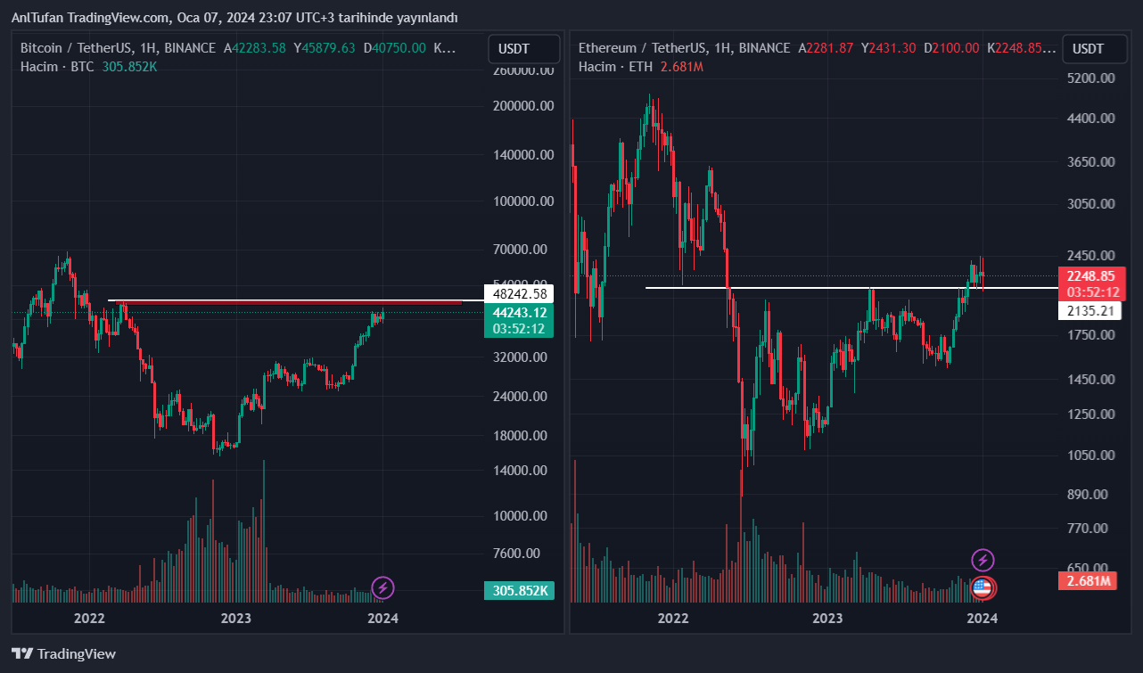 Bitcoin haftalık kapanış öncesinde 48.250 dolar desteğinin altında işlem görmekte. BTC halen bu direnç bölgesini aşmayı başaramadı.
