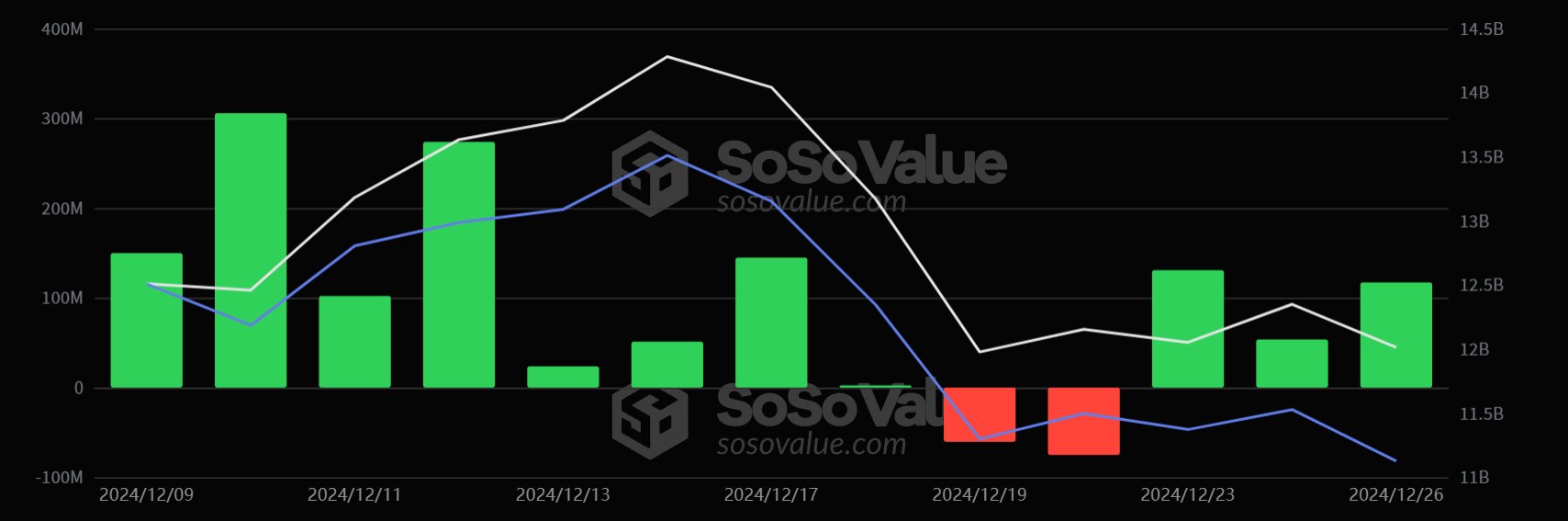 Ethereum spot ETF’leri ise 26 Aralık’ta toplam 117 milyon dolarlık net girişe sahipti.