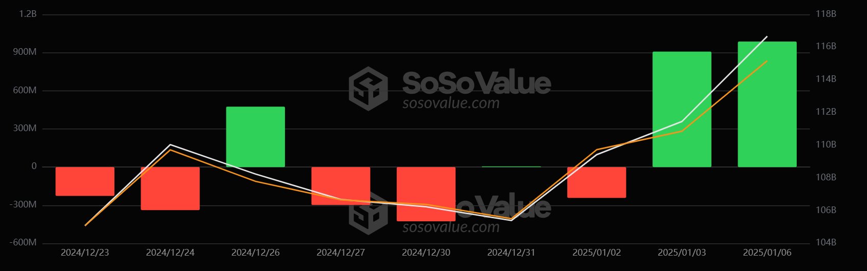 6 Ocak’ta Bitcoin spot ETF’lerine toplam 987 milyon dolarlık net giriş oldu.