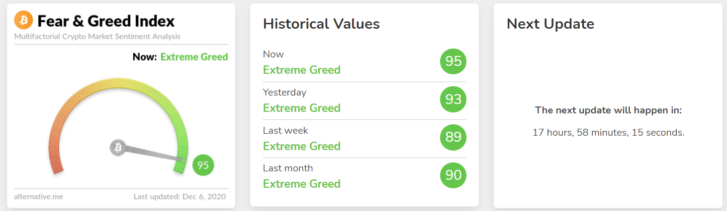 Kripto para korku ve açgözlülük endeksi bize piyasada ne kadar açgözlülük var alım mı yapılıyor satım mı yapılıyor bunlar hakkında bilgi veren bir endeks. Analistlerin yakından takip ettiği endeks 6 Aralık tarihinde 95 seviyesinde bulunuyor.