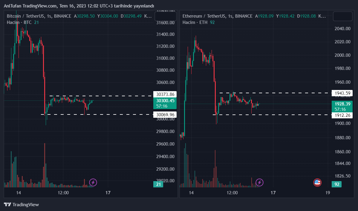 Hafta sonu özelinde Bitcoin ve Ethereum‘un hareketlerini incelediğimizde yatay bir trendin içerisinde olduğu görülebiliyor. Lider kripto varlıklar halen beklenen kırılımı gerçekleştiremedi.