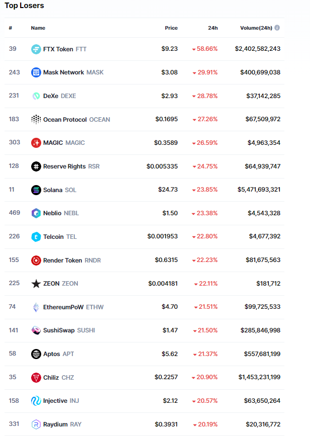 Başarılı bir veri sağlayıcısı olan CoinMarketCap’in aktardıklarına göre, aşağıda yer alan altcoin’ler son yaşanan düşüşlerden fazlasıyla etkilenerek yatırımcıların zor dakikalar yaşamasına neden oldu: