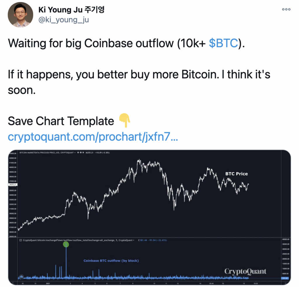 Ki Young Ju birkaç saat önce yayınladığı gönderisinde, Coinbase kripto para borsasında büyük bir Bitcoin hareketliliği yaşandığını belirtti. CEO, Coinbase’den 10.000’den fazla Bitcoin çıkışı olabileceğini düşündüğünü belirtti. Ünlü analist böyle bir şeyin gerçekleşmesi durumunda ise yatırımcılara seslendi ve şunları ifade etti: