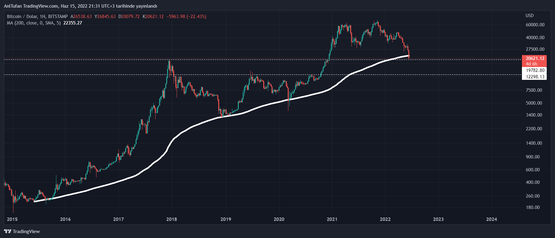 Bu zamana kadar Bitcoin‘in her ayı sezonunda 200 haftalık hareketli ortalamadan dönüş yaşadığını görsek de, FED’in 28 yıl sonra ilk kez 75 baz puanlık bir faiz artışı gerçekleştirmesi tekrardan bütün dengeleri değiştirebilir.