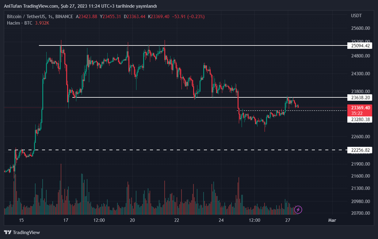 İlerleyen saatlerde lider kripto para biriminin 23.280 dolar ara desteğini tekrardan denemesi bekleniyor. Bu destek noktasının kırılması ise piyasayı kötü etkileyecektir.