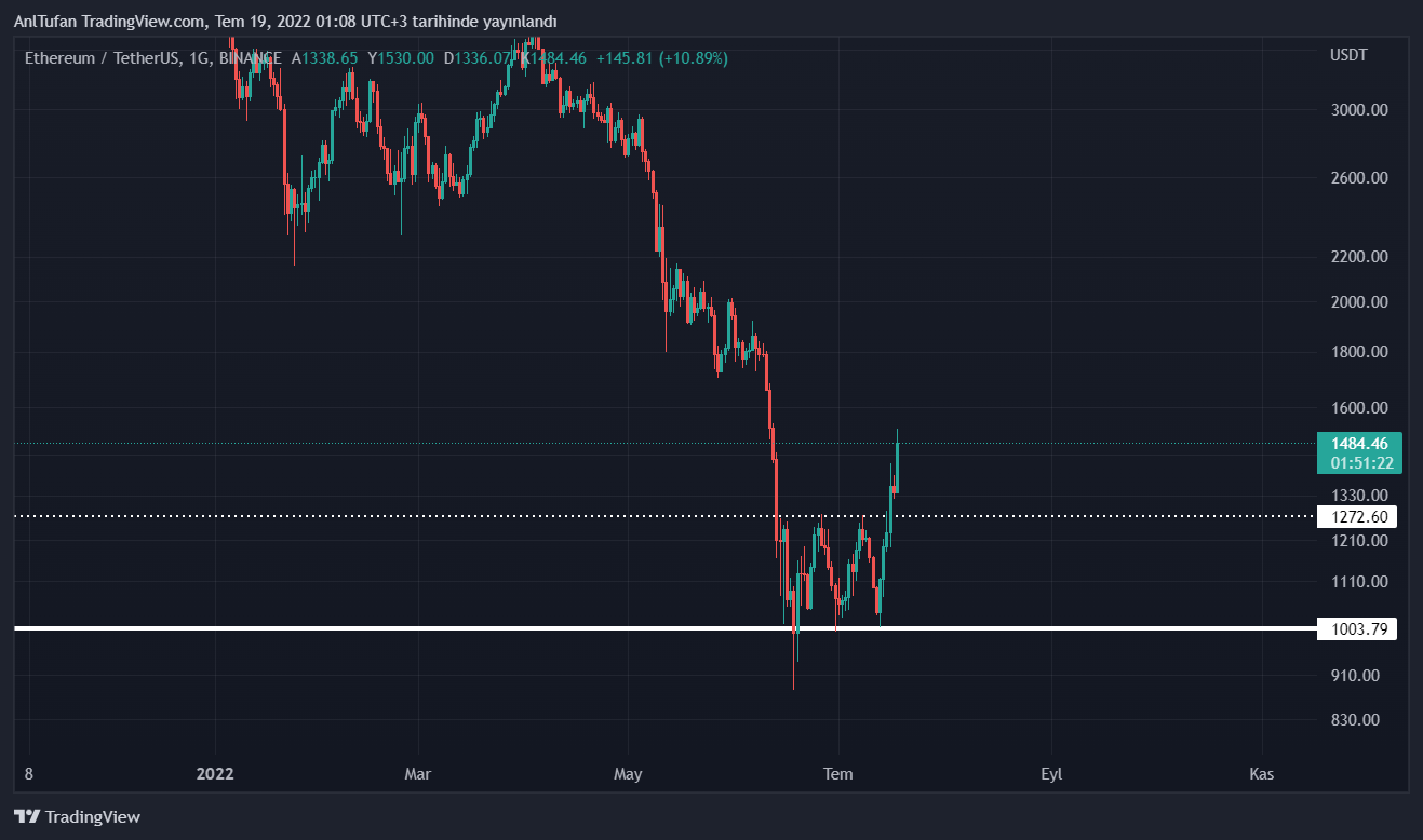 İlerleyen günlerde ETH‘nin 1700 doları geçmesi halinde altcoinlerin çok daha sert yükseliş yaşaması beklenirken, 1275 dolar desteğinin kaybedilmesi ise yeni bir çöküş serüveni başlatabilir.