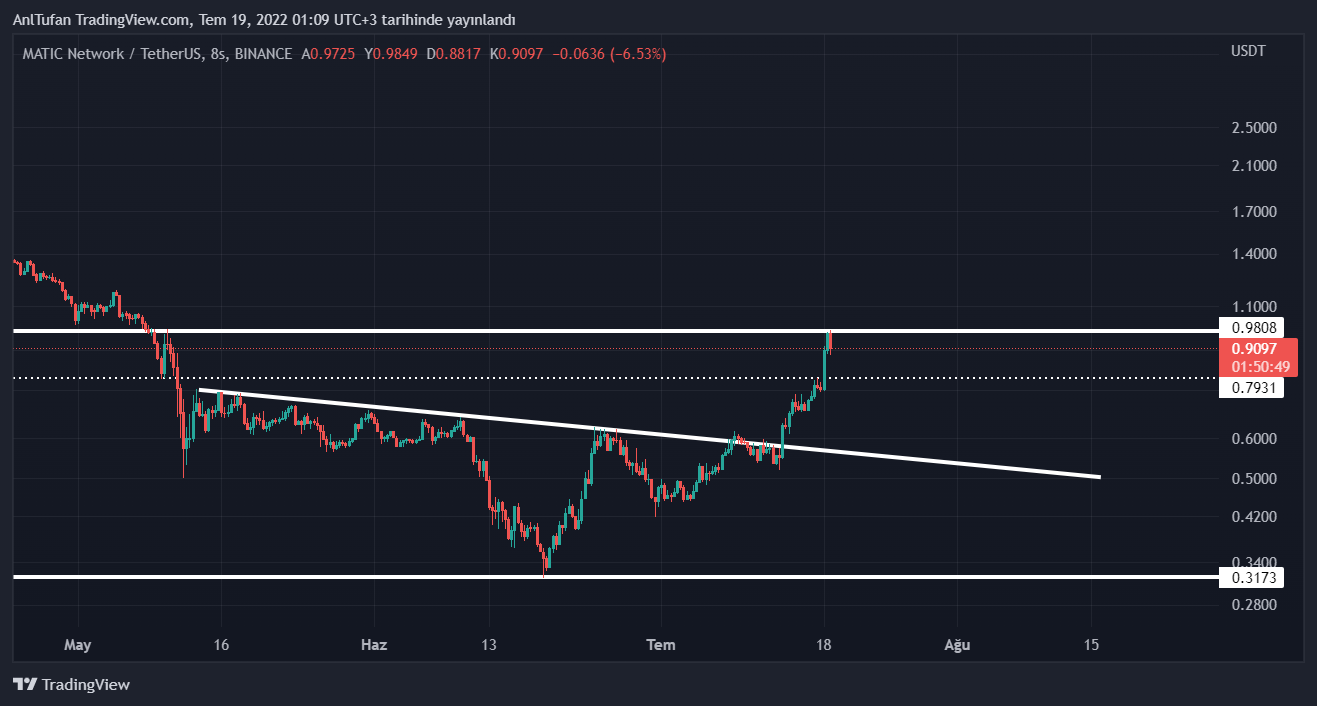 0.98 dolar seviyelerinde bulunan direnç seviyesinden reddedilen popüler altcoin, bu noktanın aşılmasıyla birlikte çok daha sert yükseliş yaşayabilir.