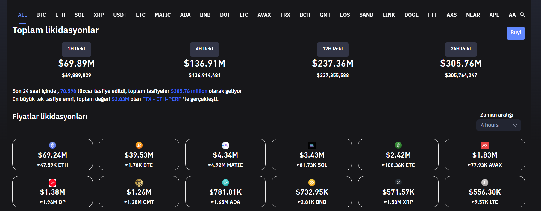 Bu likit edilenlerin büyük çoğunluğunu short pozisyonların kapsadığı görülürken, anlık düşüşlerden ötürü yüksek kaldıraç ile long pozisyon açan yatırımcılarda likit edilebilmekte.