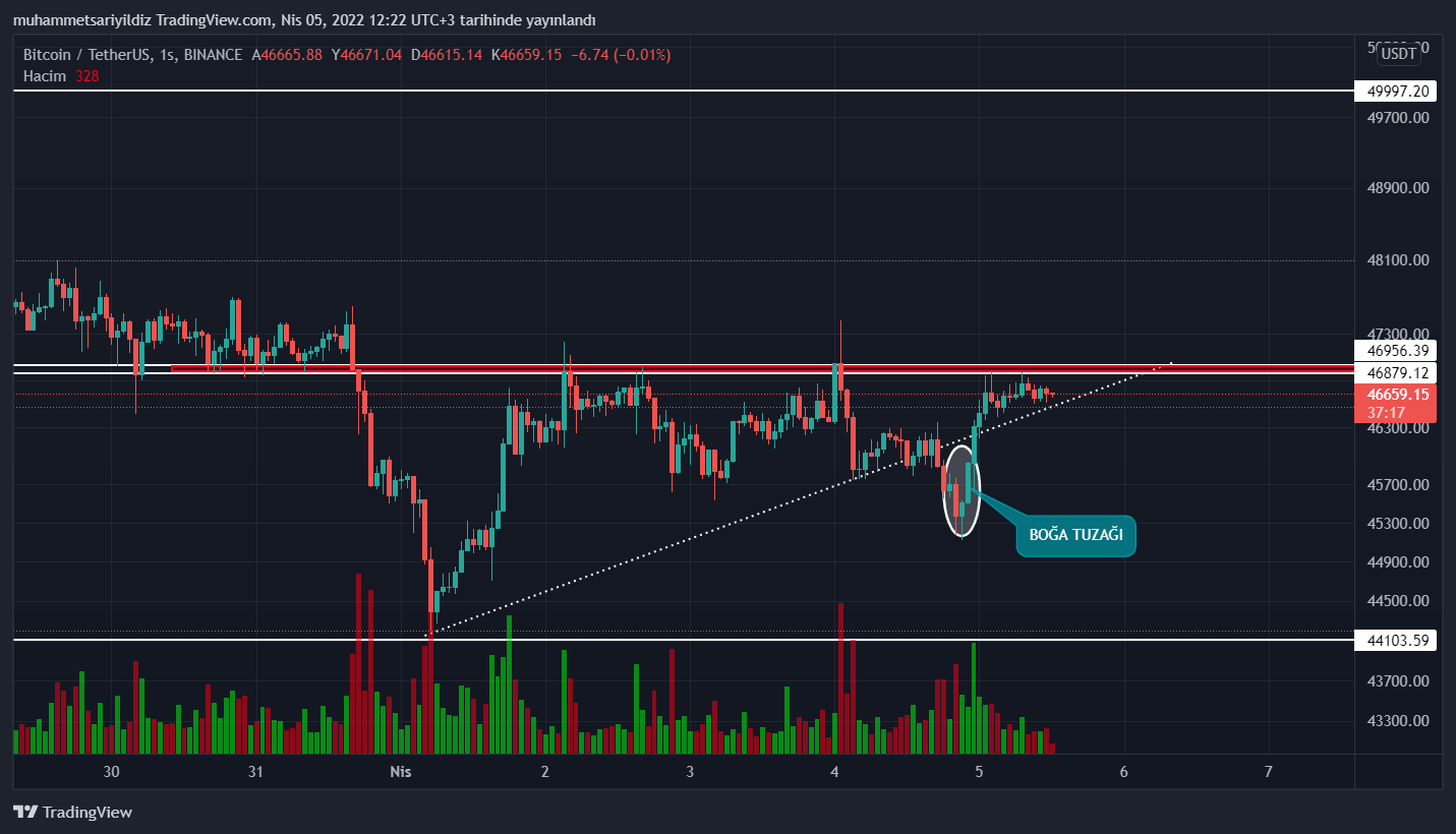 Şeklinde bir düşüncesi bulunan okurlarımız, Bitcoin‘in 46.800 – 47.000 dolar direncini kırmasını bekleyebilirler.