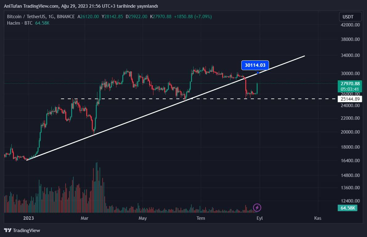 Her ne kadar Bitcoin yeniden 28.000 $ seviyelerine ulaşmayı başarmış olsa da, halen majör yükselen trendinin altında işlem görmekte.
