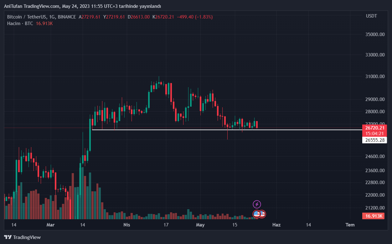 Bugün özelinde yüzde 2’ye yakın düşüş yaşayan BTC, yine kritik destek seviyelerine gerilemiş gibi gözüküyor. Birçok kez 26.500 dolar desteğinden seken Bitcoin (BTC), şuan itibariyle de bu destekte tutunuyor.