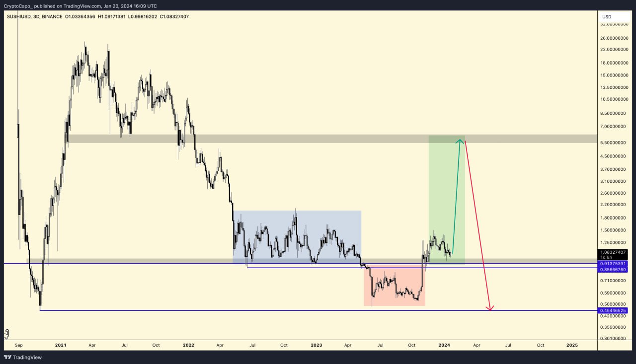 Önümüzdeki dönemde SUSHI’nin 5 dolar seviyelerine kadar ani bir yükseliş yaşayacağını düşünen Capo, bu yükseliş sonrasında ise dev bir çöküşün yaşanmasını bekliyor.