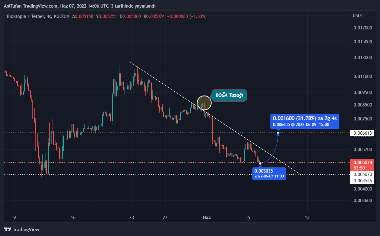 Geçtiğimiz günlerde minor düşen trendini kırmayı başaran BLOK, bu seviyede bir boğa tuzağı gerçekleştirmesiyle birlikte tekrardan değer kaybetti.