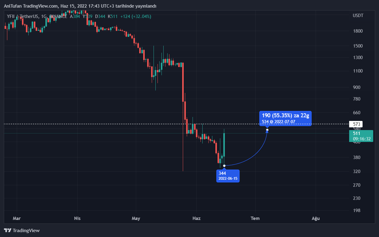 Geçtiğimiz günlerde temel problemler nedeniyle LUNA gibi bir çöküş yaşayan YFII, bugün itibariyle ise çok sert bir şekilde yükselişe geçti.